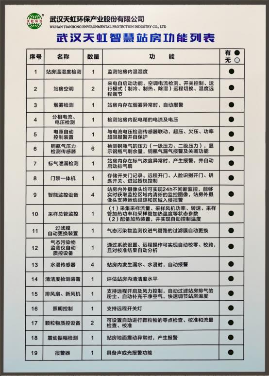 自6月份開始,便時??梢钥吹剿麄冇懻摲桨浮⒀芯考?xì)節(jié)、復(fù)看總站要求、實戰(zhàn)安裝測試,同時不忘實地考察研究其他單位的建設(shè)情況。無論下班后,還是星期天,總能在站房內(nèi)外看到一群忙碌的身影,在如此短時間、高溫度的客觀條件下,大家齊心協(xié)力最終在7月14日完成了整體站房建設(shè)。智慧站房除常規(guī)功能外,還包含19項自動化控制功能,多于總站要求的必配項??蓪崿F(xiàn)遠(yuǎn)程開門、遠(yuǎn)程開關(guān)燈、站房溫濕度監(jiān)測、站房空調(diào)自控、站房清潔度及震動監(jiān)測、站房煙霧及水浸監(jiān)測、電源檢測及自控、氣瓶壓力及泄漏監(jiān)測、站房內(nèi)外環(huán)境實時監(jiān)控及報警、采樣總管參數(shù)監(jiān)控、氣態(tài)監(jiān)測儀過濾膜自動更換、氣態(tài)監(jiān)測儀自動質(zhì)控、顆粒物質(zhì)控等。