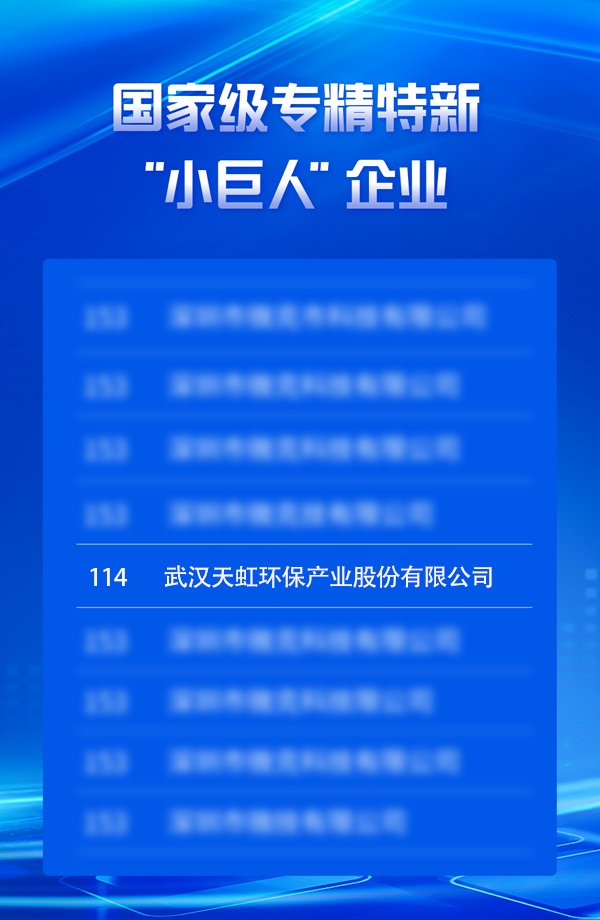 祝賀武漢天虹環(huán)保入選國家級“專精特新”小巨人企業(yè)