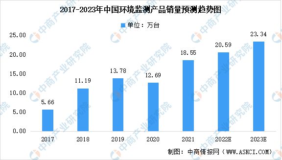 根據(jù)中國環(huán)境保護(hù)產(chǎn)業(yè)協(xié)會統(tǒng)計(jì)數(shù)據(jù),2017-2021年我國環(huán)境監(jiān)測產(chǎn)品的銷量及增長率整體處于上升趨勢,2020年受到疫情影響,環(huán)保項(xiàng)目開工率、工時、完工率等指標(biāo)均受到不利影響,但市場規(guī)模仍維持在高位。2021年我國環(huán)境監(jiān)測產(chǎn)品的銷量達(dá)18.55萬臺,預(yù)計(jì)2023年我國環(huán)境監(jiān)測產(chǎn)品的銷量將達(dá)23.34萬臺。